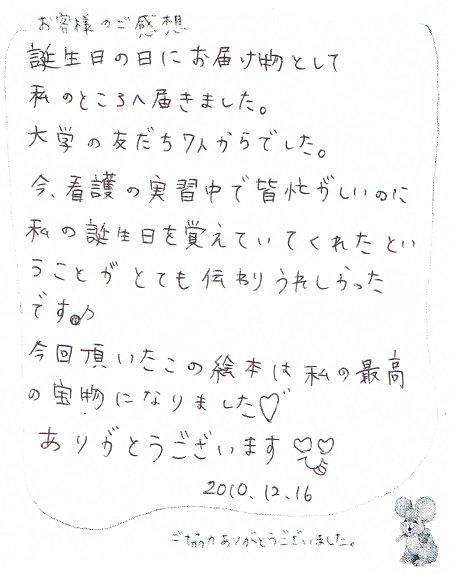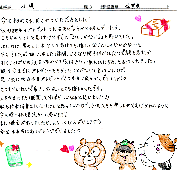 お客様の声 誕生日プレゼント 大人向けギフト絵本専門店│誕生日や出産祝いにオリジナル絵本 ギフト絵本ドットコム。