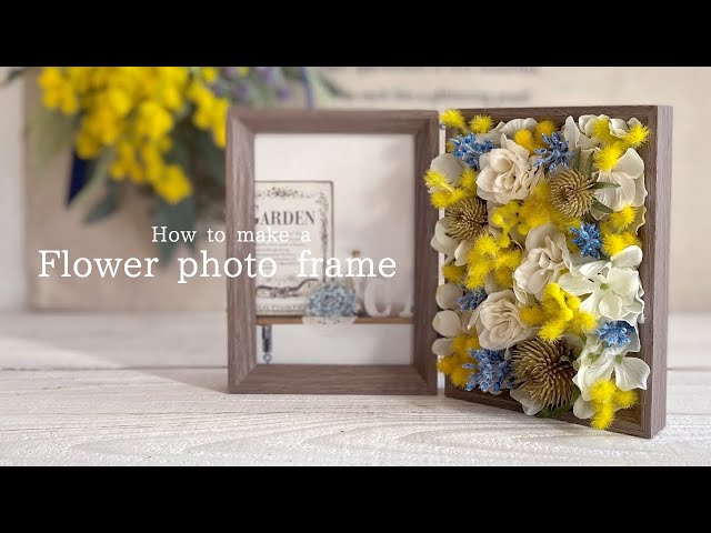 100均造花 フラワーフォトフレームアレンジメントの作り方 ギフトにもかわいい手作り写真立て ブライダル フューネラル。