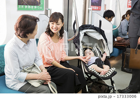 抱っこ紐をして電車に乗る若い女性の写真素材17333039- PIXTA。
