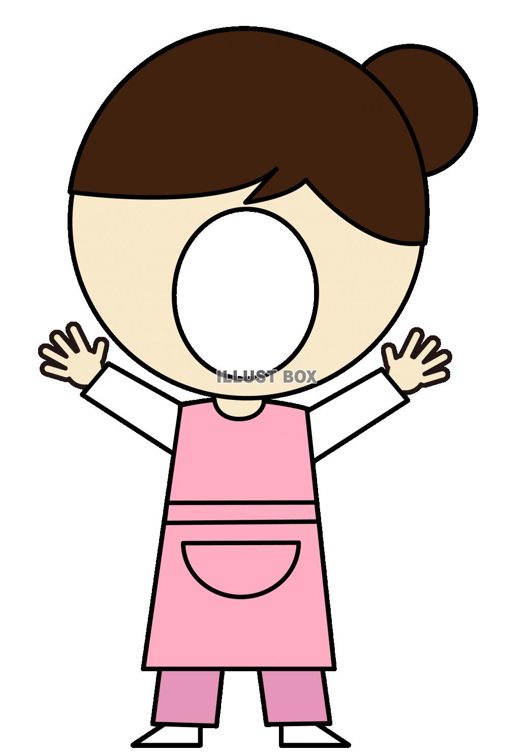 1_顔ハメ_人物・女性・エプロン・お母さん・主婦・保育士・万歳:イラスト無料。