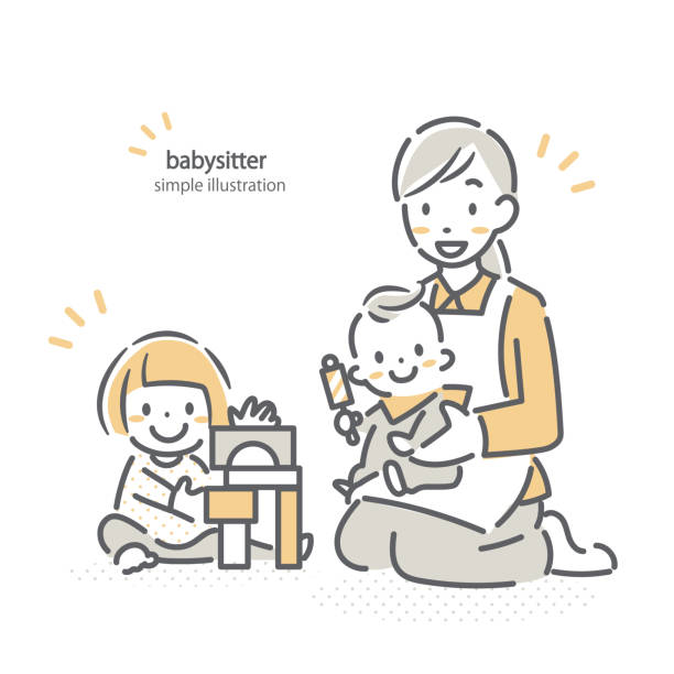 子供を抱っこするお母さんとエプロンをつけた保育士のイラスト素材FYI01640246ストックフォトの QleanMarket キュリンマーケット。
