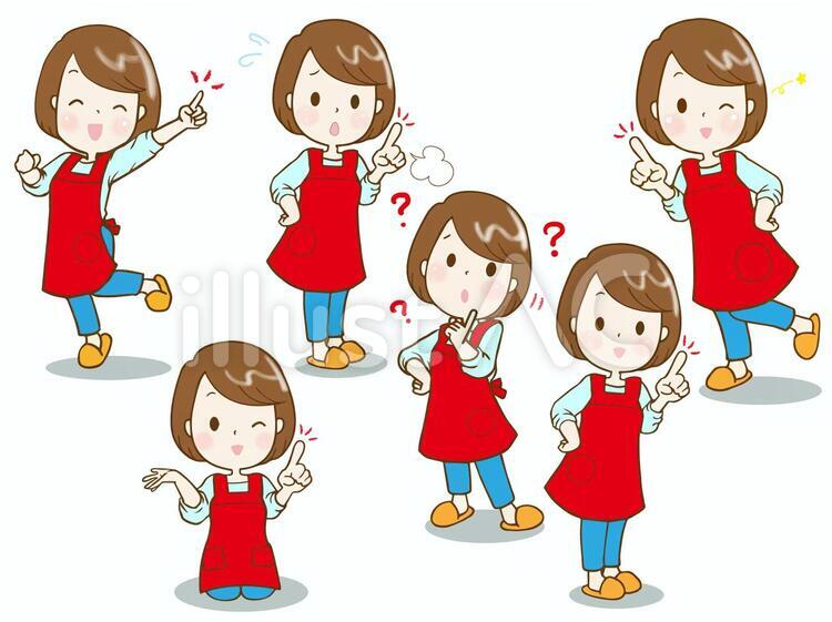 赤いエプロンを着たお母さんのバリエーションのイラスト素材47406690- PIXTA。