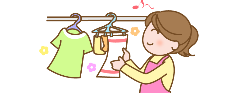 家事イラスト、洗濯物を干すエプロン姿の女性、主婦、ママのワンポイントイラスト無料イラスト素材TemplateBox。