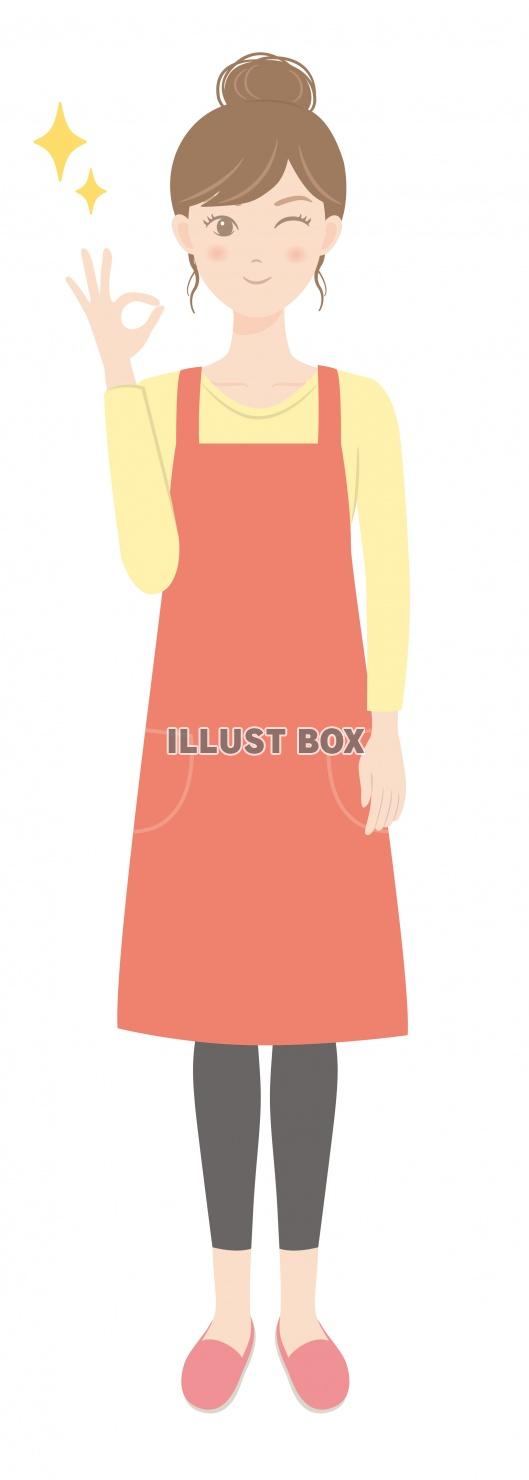 赤いエプロンを着た笑顔のお母さん オーケーサインのイラスト素材47406693- PIXTA。