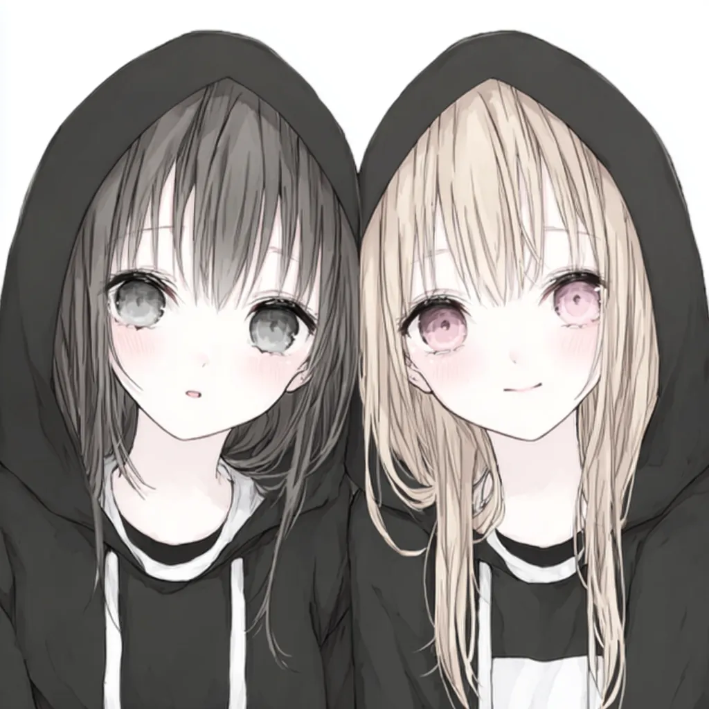 ペア画女子2人アイコン黒パーカー双子風イラスト・フリー素材なら「シンテリ」。