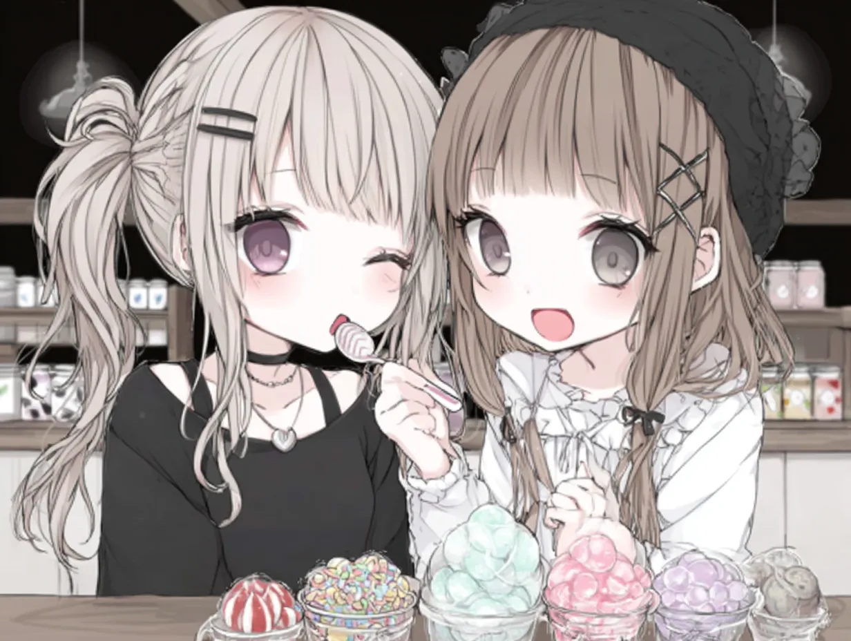 かわいいペア画・スイーツカフェの双子風ガールズイラスト・フリー素材なら「シンテリ」。