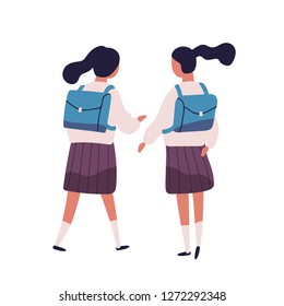 制服を着た女の子や双子の姉妹のペア 。女子学生、生徒、クラスメート、同級生、友人が一緒に歩き、話したりおしゃべりしたり、逆に見たりする。平らなベクターイラスト。」のベクター画像素材 ロイヤリティフリー1272292348Shutterstock。