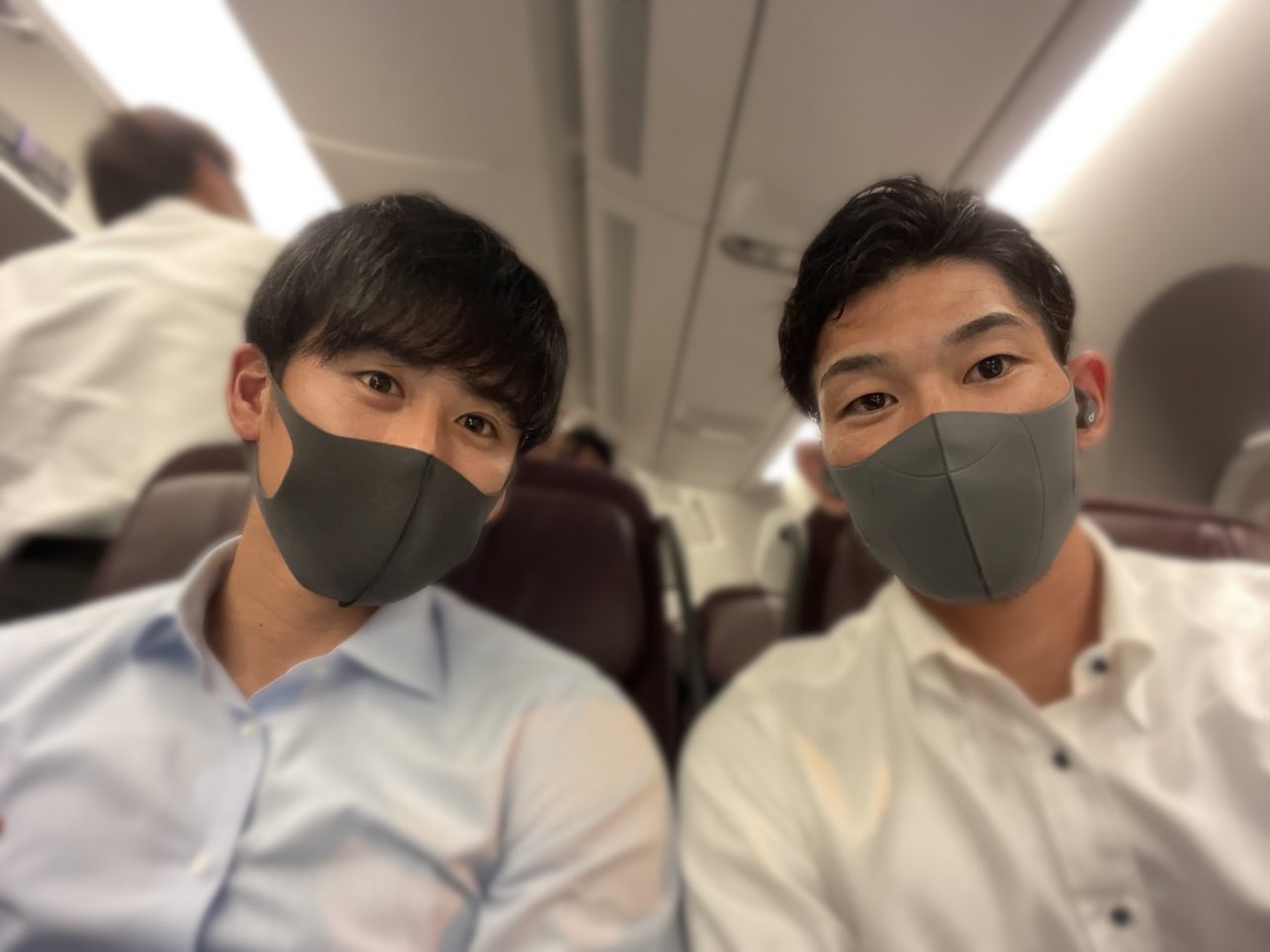 去年の写真です😂 プロ1年目のゆうごさんとプロ入る前の僕です。一緒にプレーしてた人がプロに入ってすごい刺激になりました😁 いつか投げ合いたいな〜😏板東湧梧 太田龍 JR東日本 顔面レベル 桁違い 久々投稿。