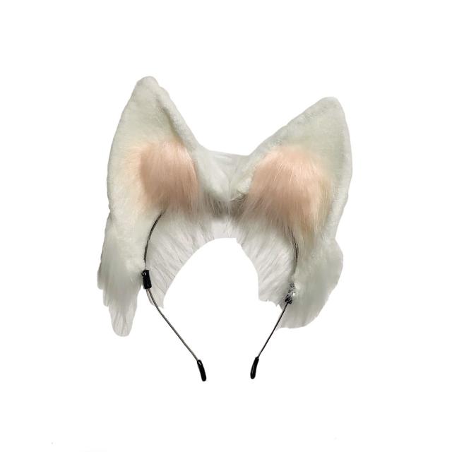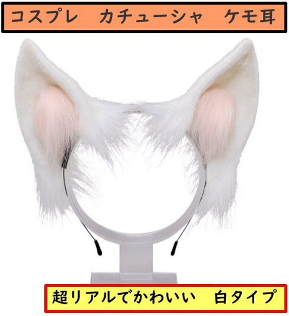 白タイプ ケモ耳 カチューシャ リアル 手作り キツネ耳 猫耳 トナカイ耳 カチューシャ。