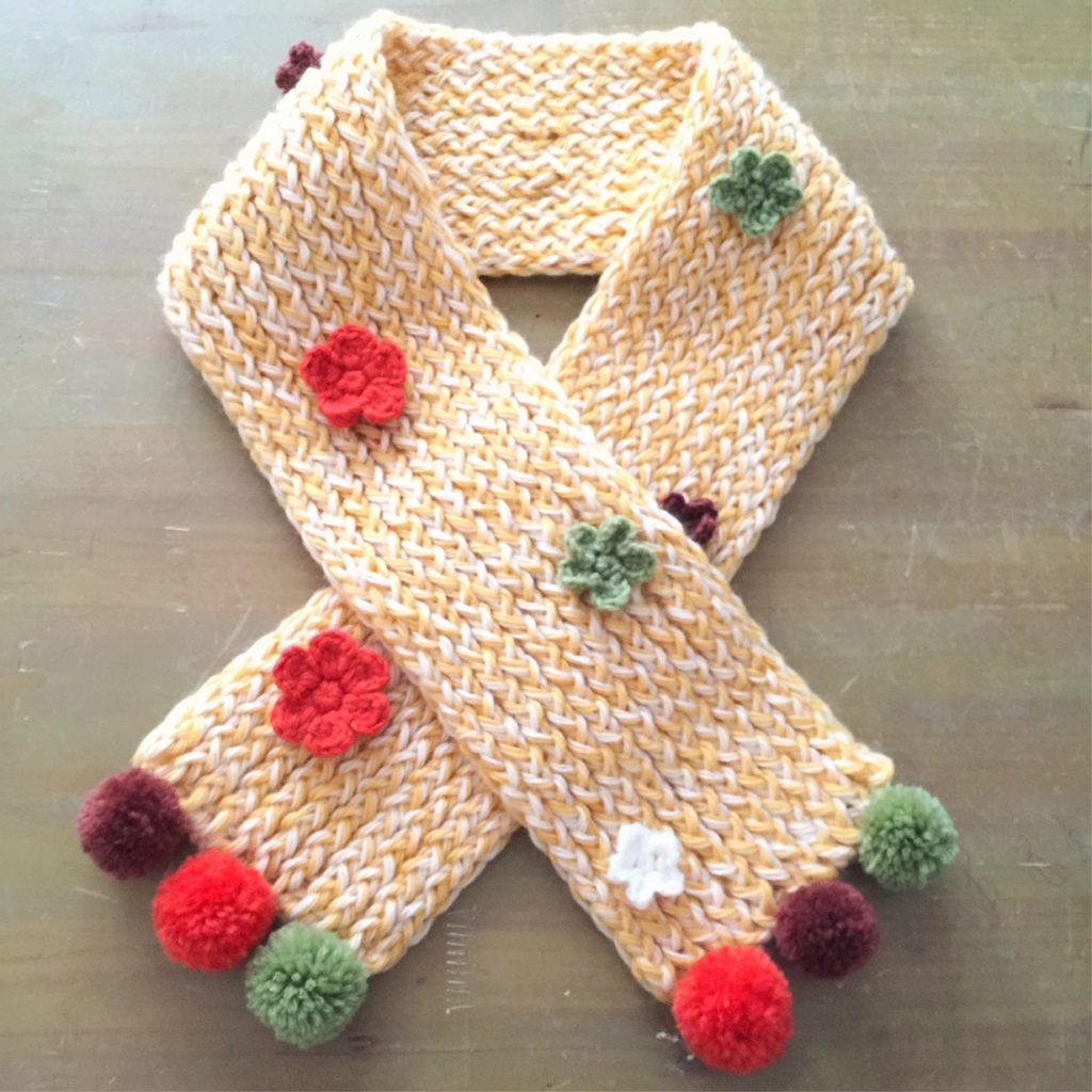 子供マフラーを手編みで作ろう♡簡単にすぐできるポンポンマフラー 編み図あり 小さいお庭の自給自足生活 オッス、オラ ターシャ。