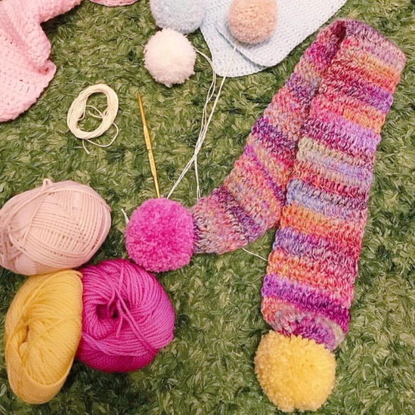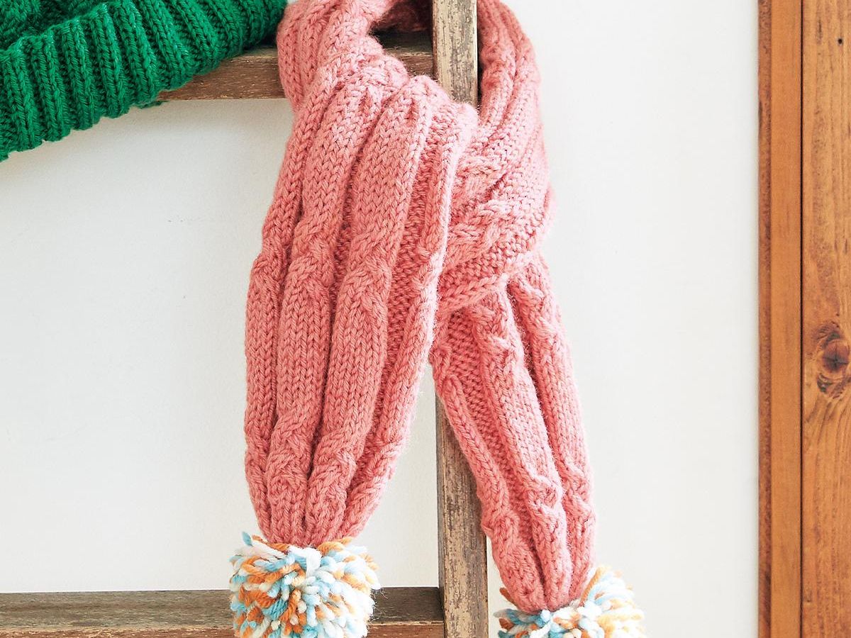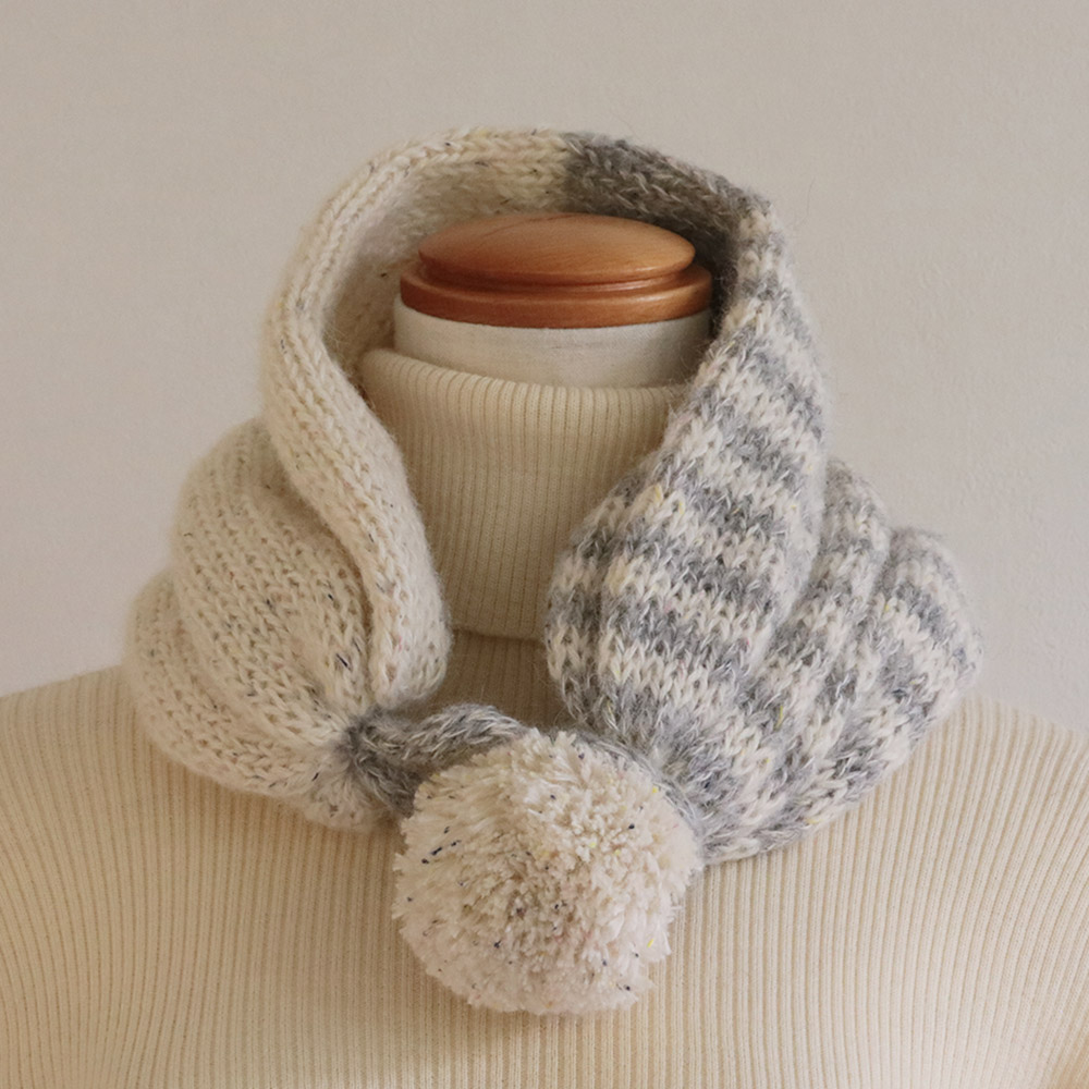 ポンポンと太めのリブ模様が可愛い!「子供用のマフラー」編み方ぬくもり。