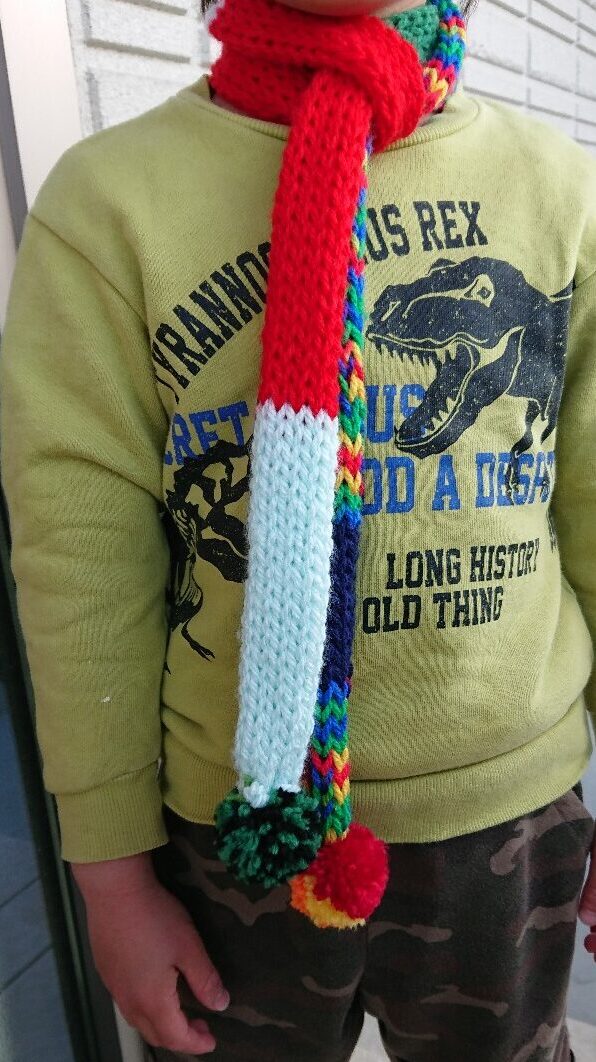 手作りの可愛いマフラーをお子さんにプレゼントしてみませんか??モンテッソーリ教室Foresta&赤ちゃんデパート河田。