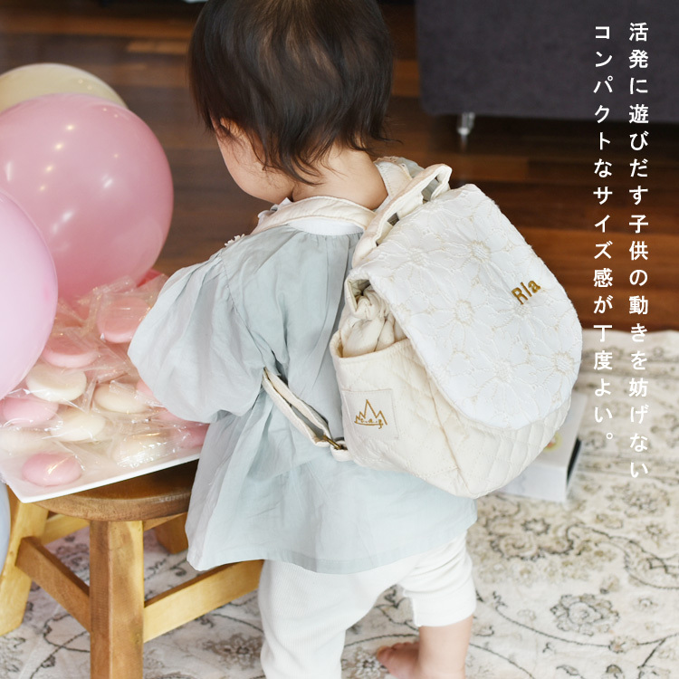 DOT LACE 世界にひとつの名入れベビーリュック 4colors ドットレース 女の子 男の子 1歳の誕生日 一升餅リュック 出産祝い ハンドメイド 日本製 即日発送名前入り出産祝い・おむつケーキ専門店babyRotaco~ベビーロタコ~。