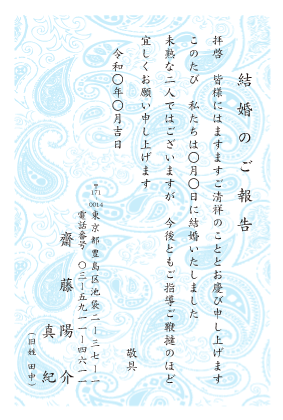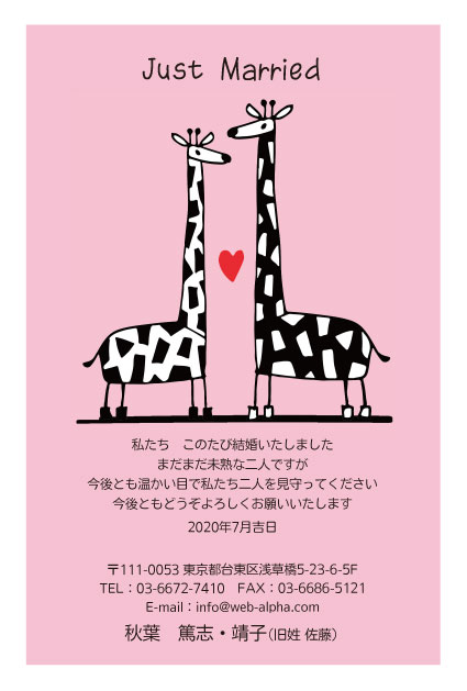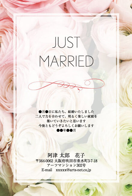 結婚報告はがき写真ありと写真なしのデザイン結婚報告はがきのPAM 年賀状・入籍報告。
