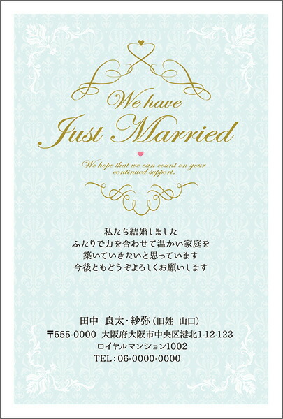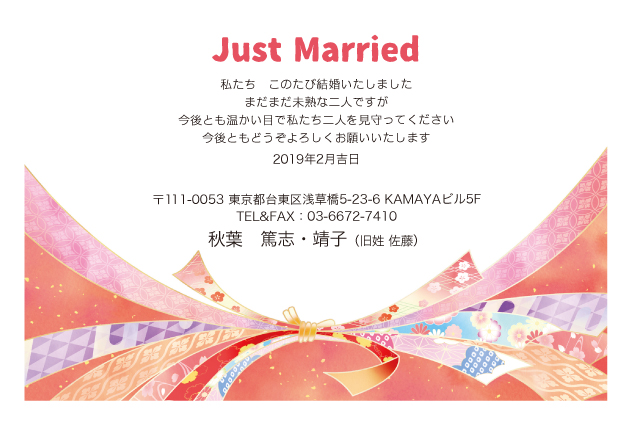 入籍・結婚報告 はがきデザイン見本即日印刷プリントメイト。