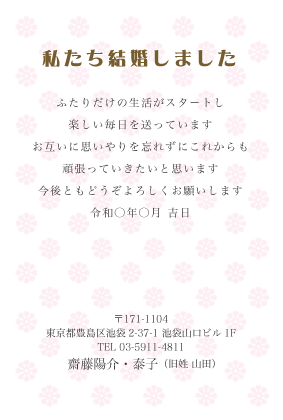 入籍・結婚報告 はがき文例1枚~即日印刷プリントメイト。