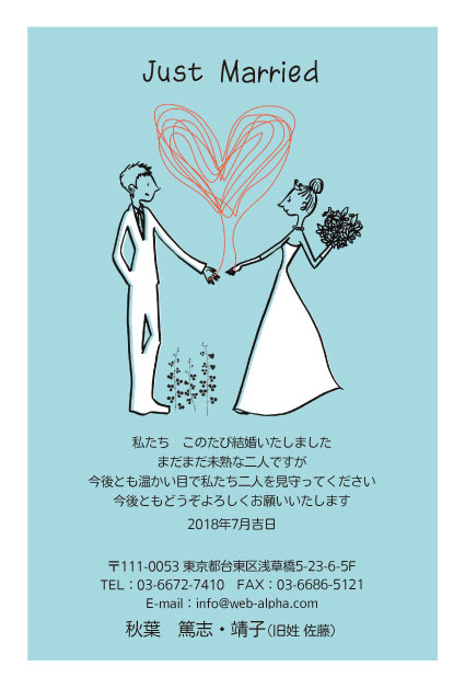 結婚報告はがき印刷:写真なしデザイン専門店 アルファプリントサービス。