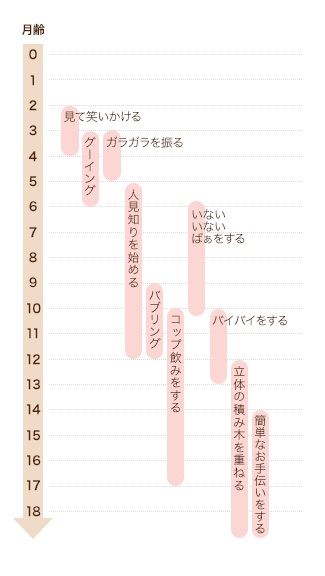 医師監修 0カ月~1歳6カ月までの言語・社会性の成長ベビーカレンダ。
