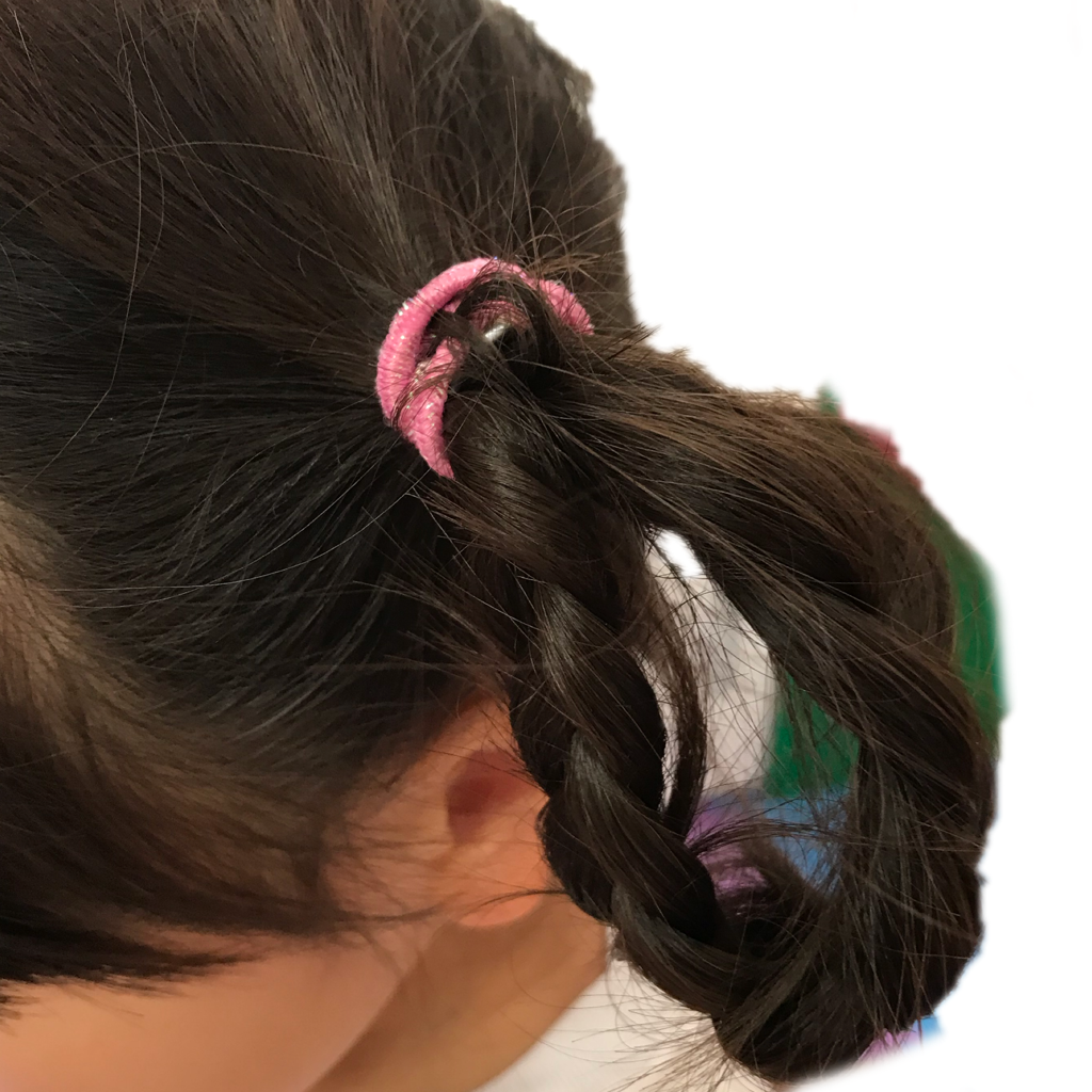 子どもが喜ぶこと間違いなし◎カラーゴム×三つ編みがキュートなツインお団子アレンジヘアレシピ 頭美人。