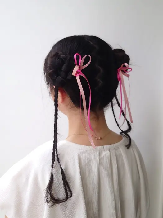 ツインお団子🍡 リクエスト →ふたつのお団子がいい!!ふわっとした感じで🫶 ふわっとしたお団子のリクエスト貰ったものの、仕込みもしてないし相変わらず落ち着きがなくてコテデビューは先送り中の娘👧🏻なんとか少しでもふわふわ感出そうと頑張ったつもりが、中途半端。
