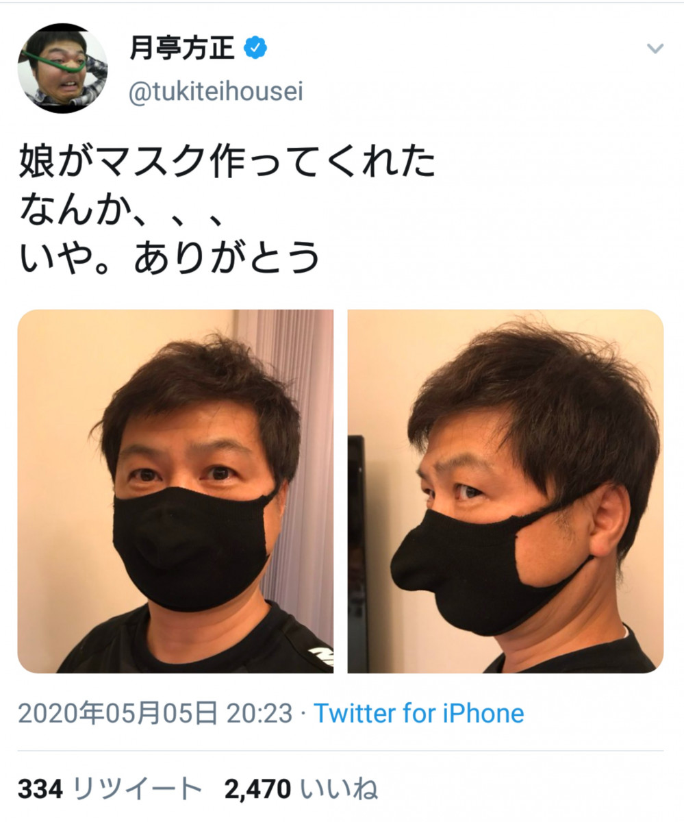 ママン𓀇絵ぇ描くます on X: "@1Genstyle1 https:t.co uQiKR8VjeZ 月亭方正 山崎邦正 さんは娘さんに靴下でマスク作ってもらったみたいですよ♪"X。