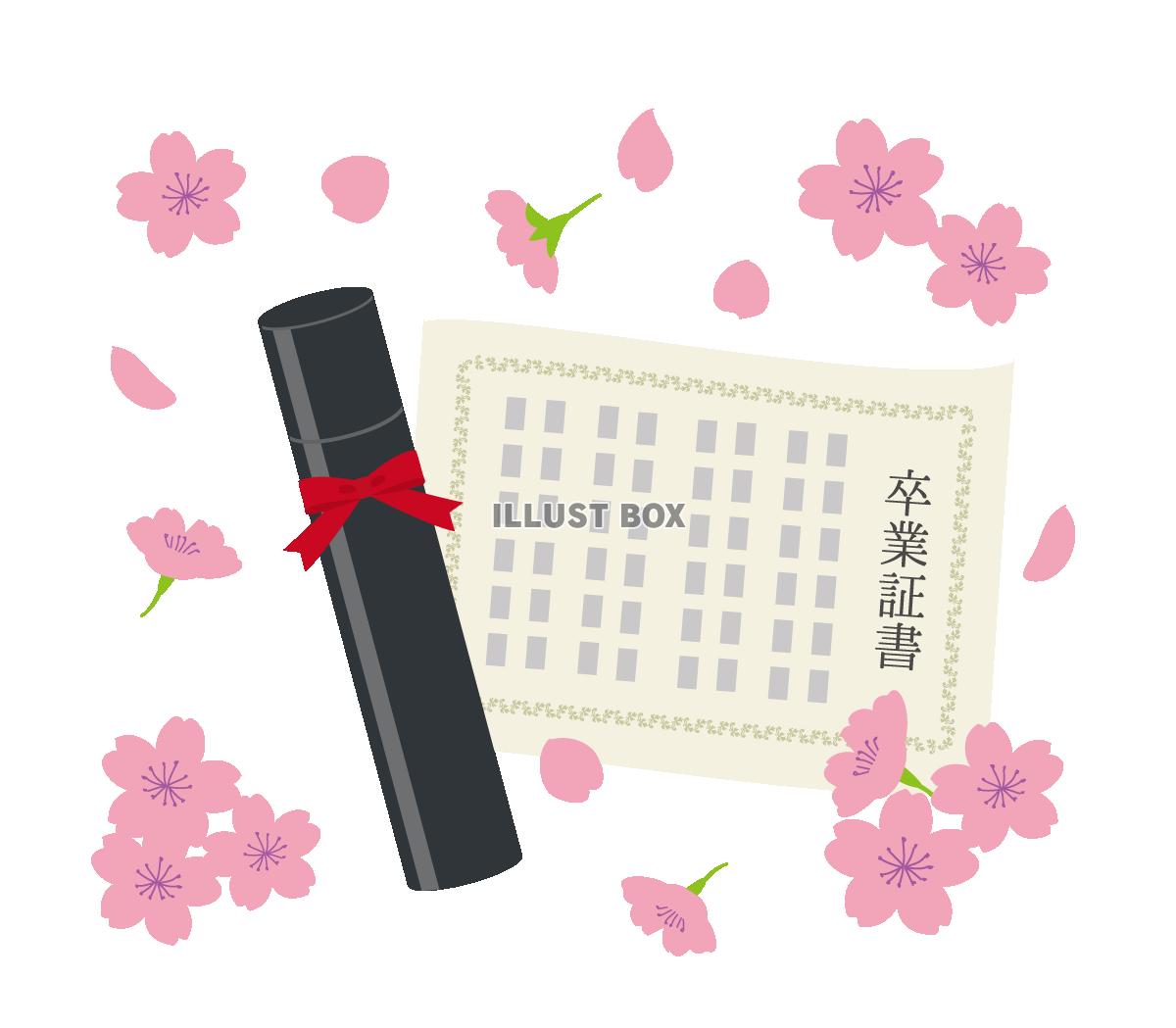 卒業証書の筒と桜の花イラストのフリー素材イラストイメージ。