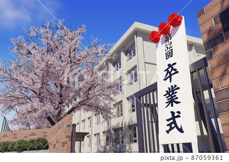 桜が満開に咲く卒業式当日の校門と看板春の学園ロケーション・卒業式・青春とノスタルジーのイメージのイラスト素材87059361- PIXTA。