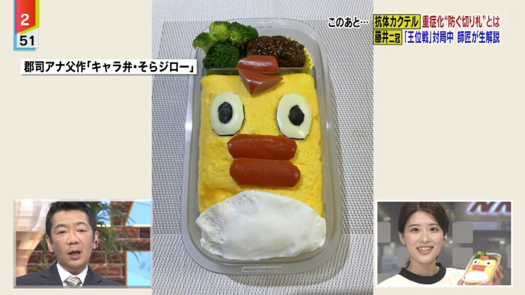 テク憧 on X: "恒例の郡司パパの料理コーナーはそらジローのキャラ弁。 力作宮根の発注にだいぶ無理が出て来てるのでそろそろ本当に断ろう。郡司恭子https:t.co Qen0gkf6ws"X。