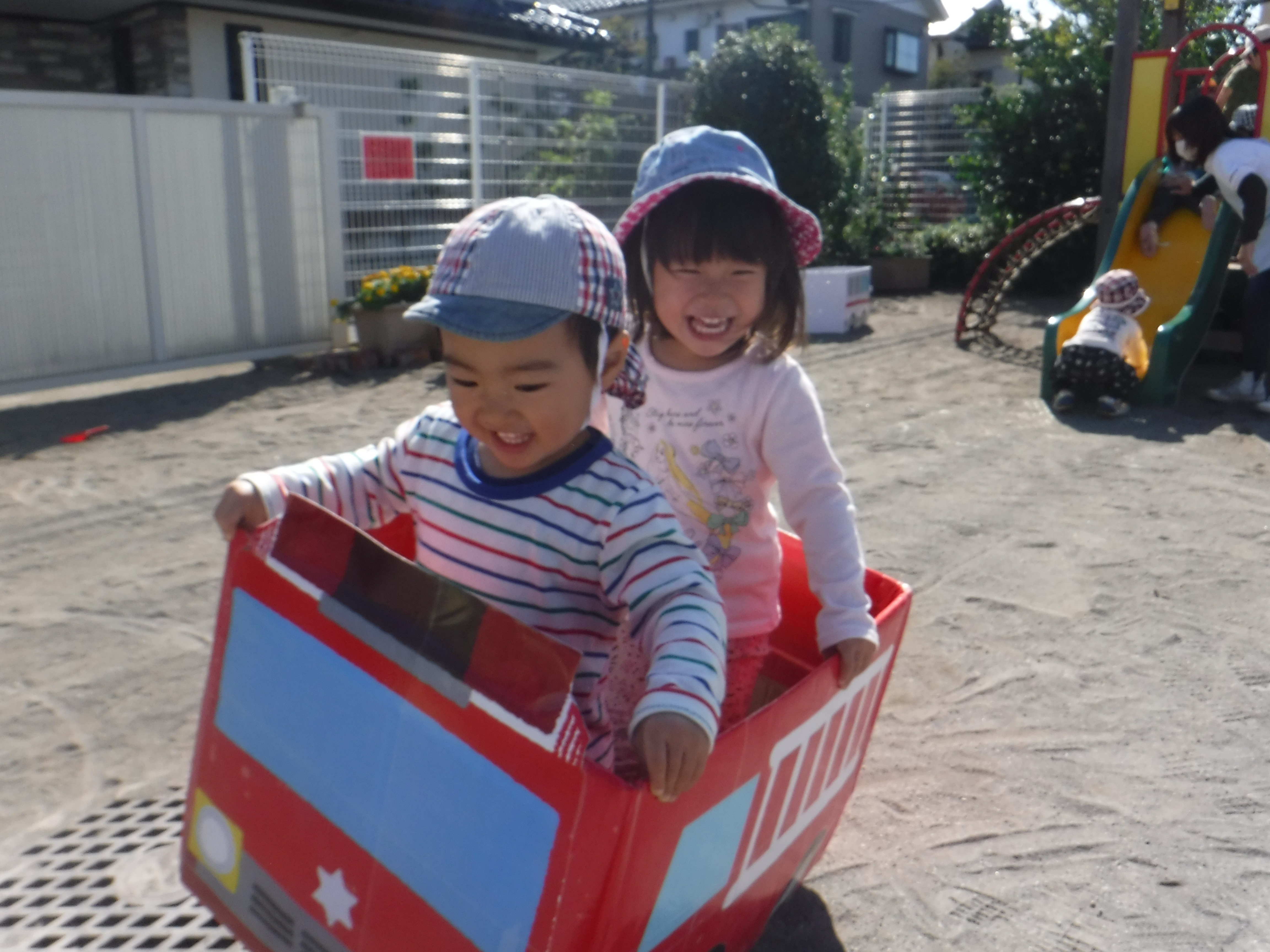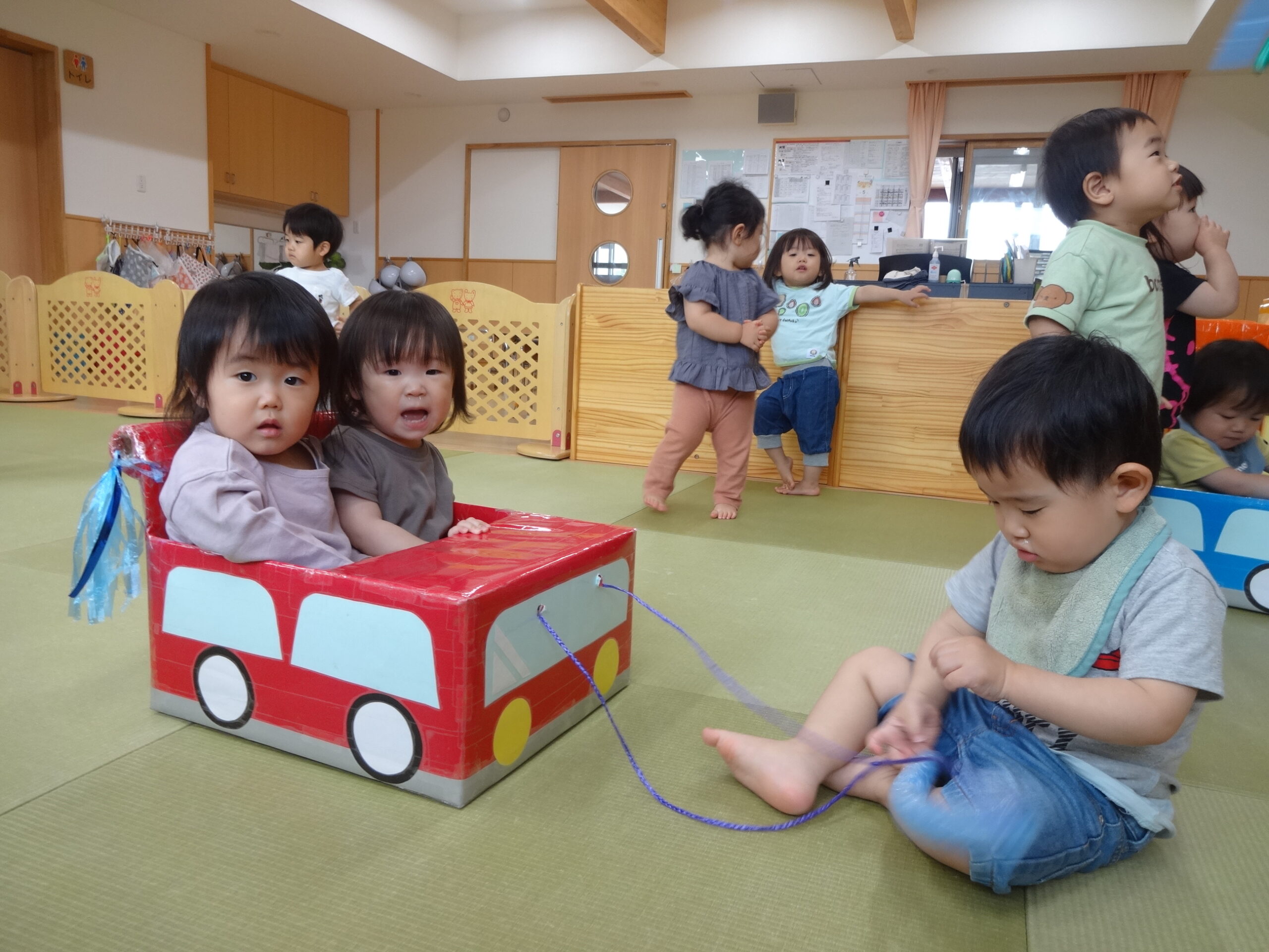 ダンボールカーで遊んだよ☆タートルナーサリー 亀川病院保育所 ニチイキッズ。