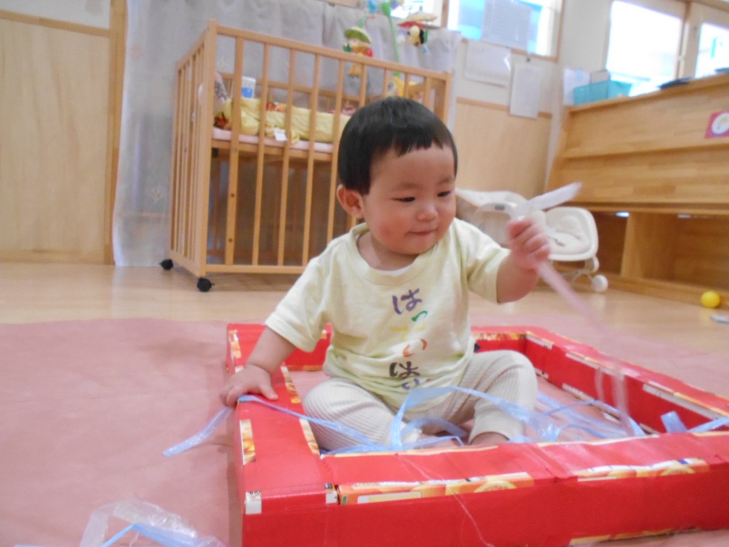 いちご組 段ボール遊び🎵保育士愛情ブログこどもみらい保育園 常盤園 札幌市認可保育所。