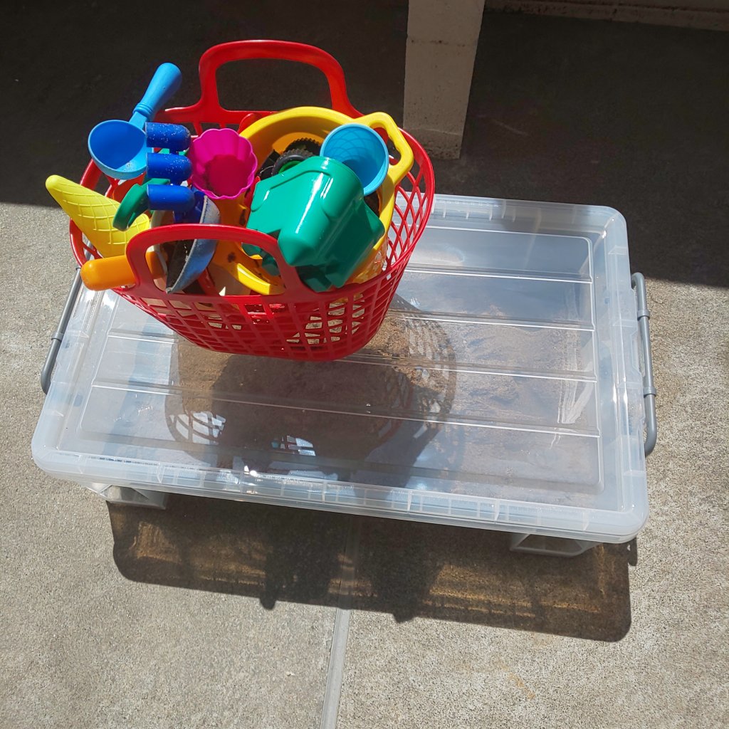 お庭やベランダで砂遊び。猫対策も◎!コンテナボックスで簡単に作れる移動式砂場はなこと - こどもとシンプルな暮らしと。