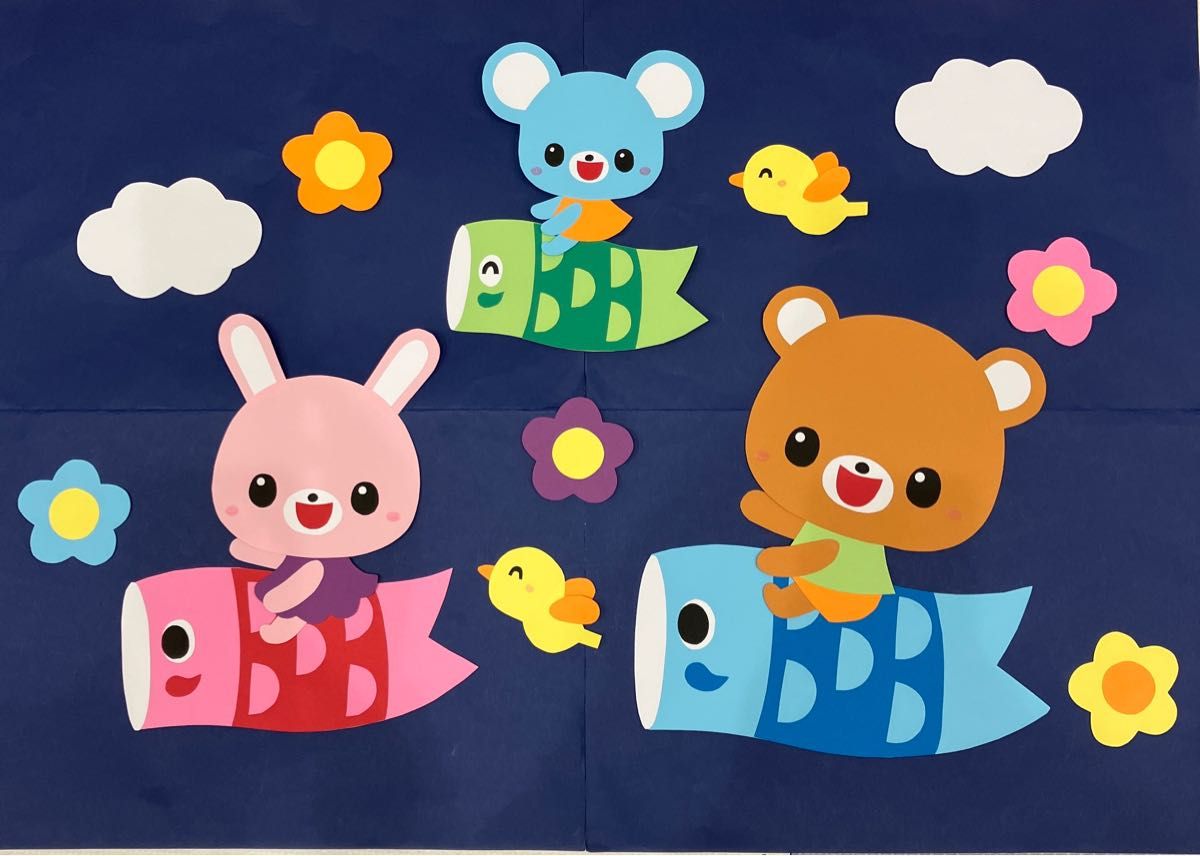 作品紹介 ☆壁面飾り工房 標準・大型兼用「こいのぼり」パネルシアター こどもの日 5月 幼稚園 保育園 学校 病院 施設 知育 壁面装飾 型紙 製作☆壁面飾り工房ブログ。