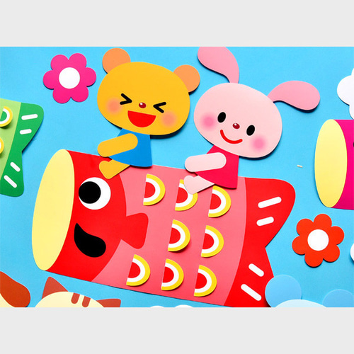壁面飾り工房本店 壁面装飾・パネルシアター・ペープサート・型紙・知育・保育・介護商品の販売☆壁面飾り工房横150cm 「こいのぼりでおでかけ!」5月子供の日 春 幼稚園 保育園 学校 病院 施設 知育 壁面装飾 型紙 製作☆。