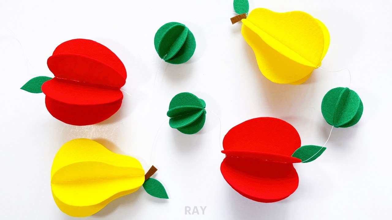 切って貼るだけ!フェルトで作る簡単「フルーツモビール」の作り方 DIY Felt Mobile "Apple & Pear"。