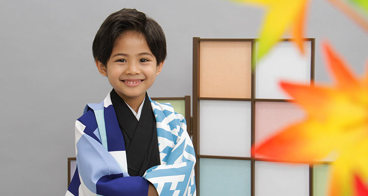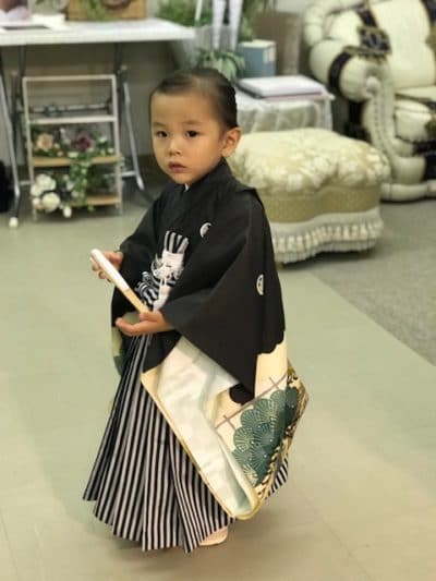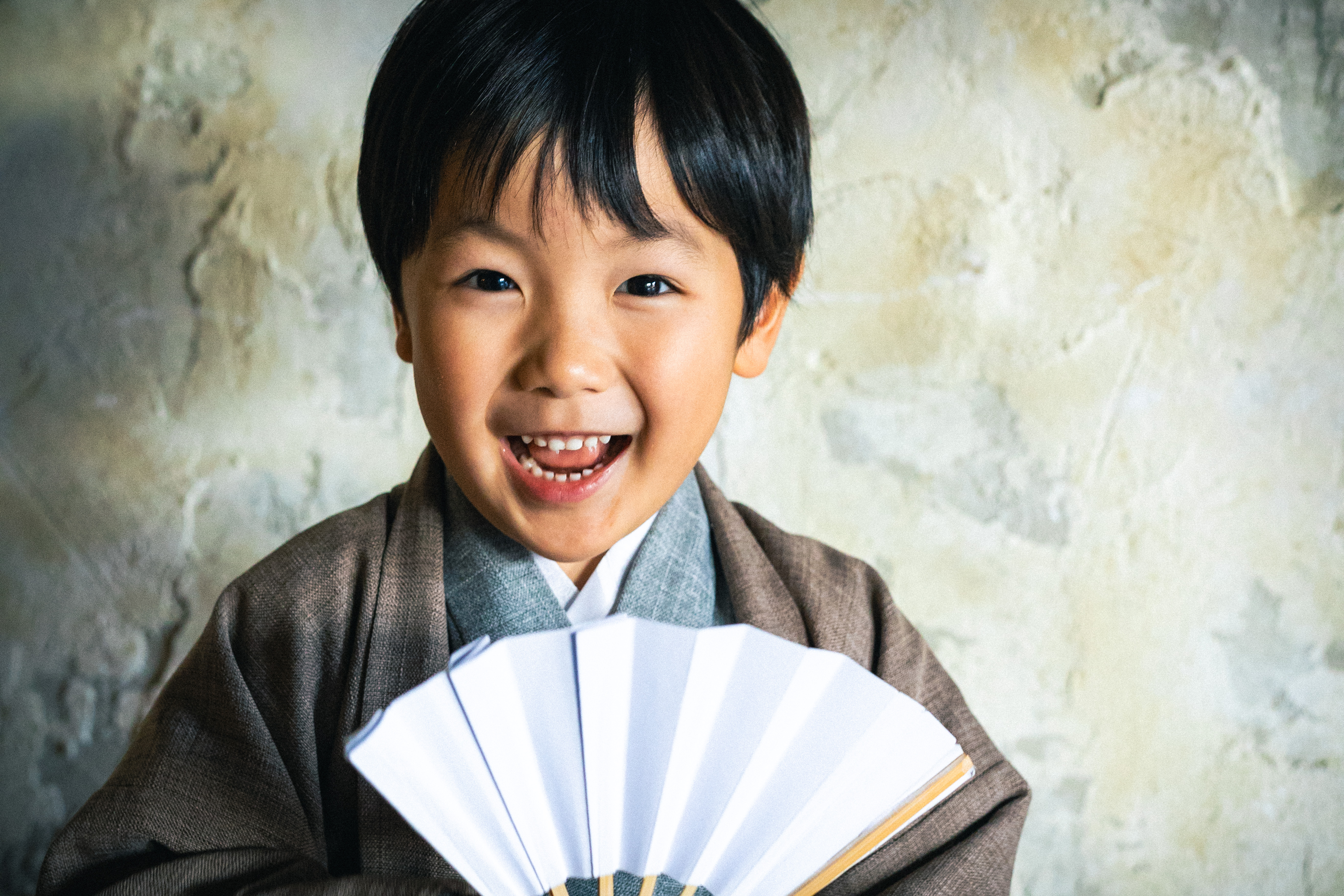七五三 個性あふれるおしゃれなロングヘアーボーイ♫3歳の男の子の七五三を撮影🦖徳島で七五三 の撮影ならUMARERUへ。ロケーション撮影もスタジオ撮影もお任せください。