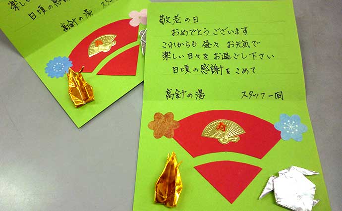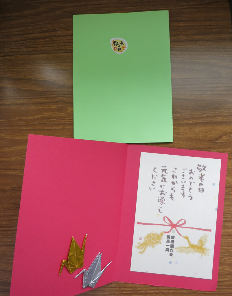 施設で敬老の日にメッセージカードとプレゼントで手作りイベントに。