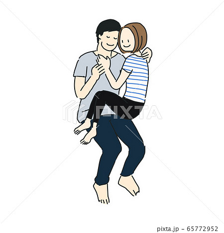 白背景に男性と手を繋いで、膝の上に乗る女性、 半袖 のイラスト素材65772952- PIXTA。