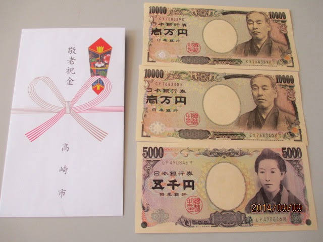 敬老祝い金 - 晴れ時々農作業・枯露柿 干し柿 と桃を作って売ってます http:korogaki.com。