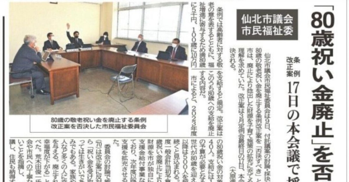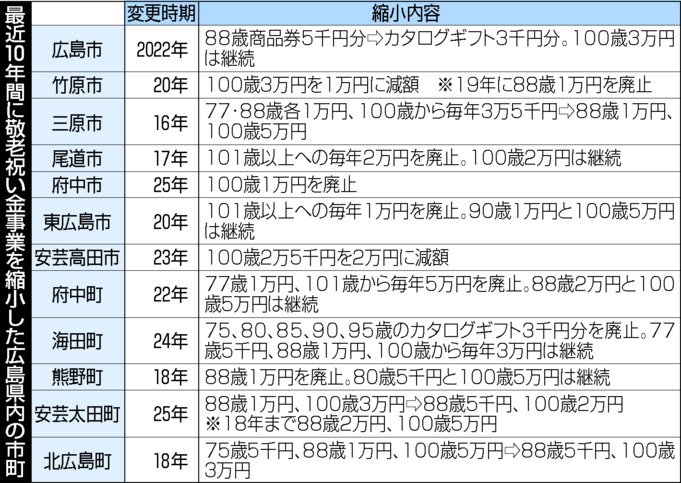 敬老祝い金の縮小相次ぐ、広島県内 その背景は47NEWS よんななニュース。