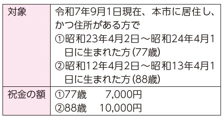 令和7年度敬老お祝品引換事業及び高齢者優待制度 行田市。