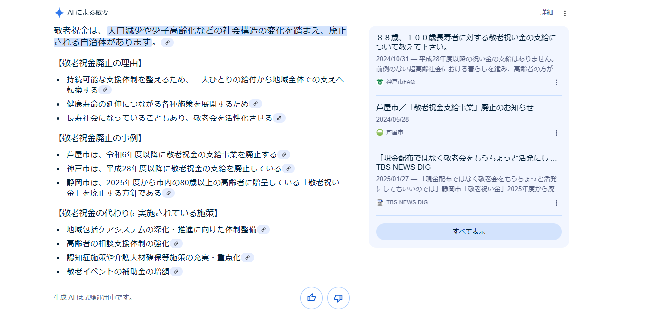 敬老祝い金」廃止・縮小する自治体も 高度経済成長期に創設の制度、長寿社会で問われる意義TBS NEWS DIG4ページ。