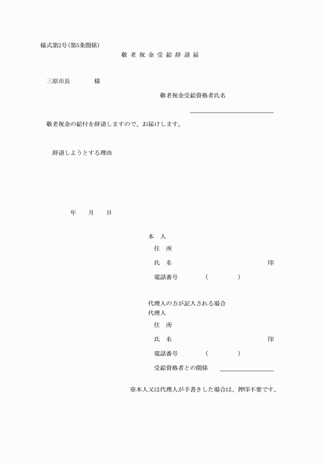 阿南市議会議員 佐々木しま子: 14 敬老祝い金の封筒。