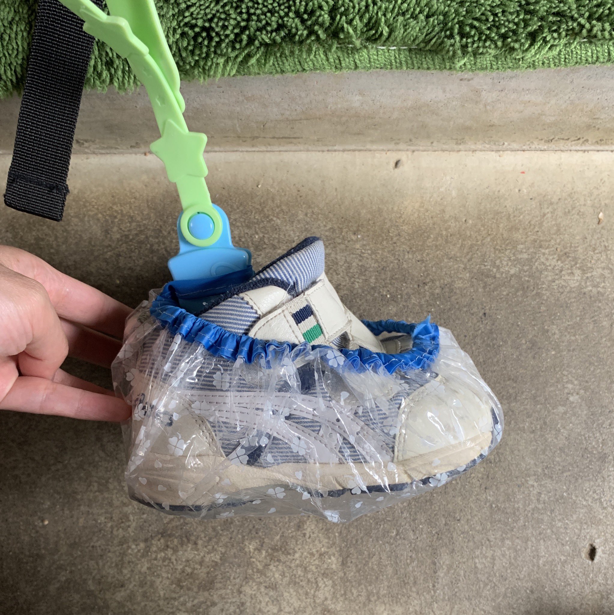 うー✳️ポイ on X: "ダイソーのベビーシューズクリップと、セリアのフードカバーという商品で、汚れた靴にかけておけば人様に迷惑かけないシステムを構築した。ふと当たってしまっても汚れをつけてしまうことはないかなと。もちろん、自分のカバンとかを汚してしまう。