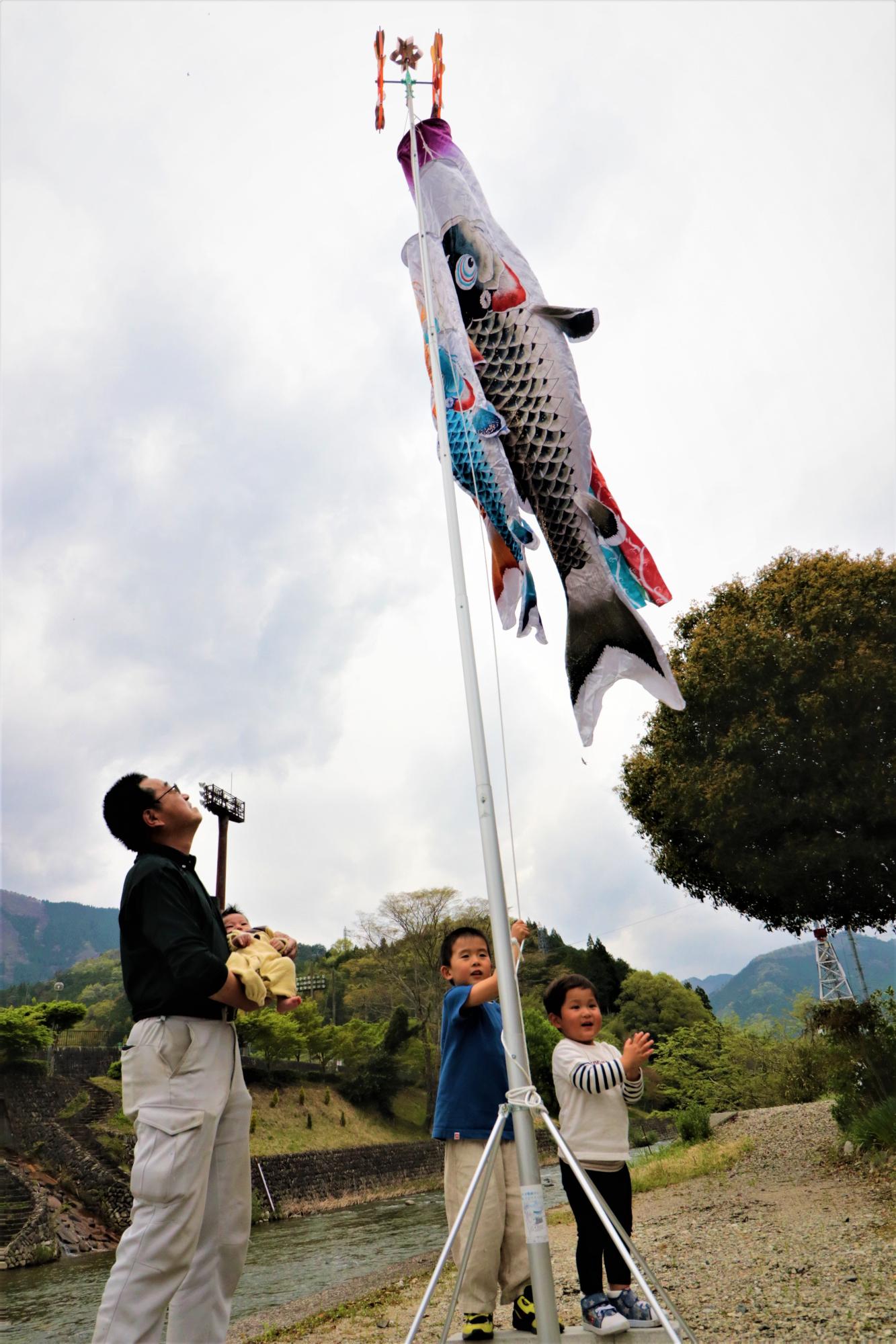 4月23日:鯉のぼり天高く「子どもたちの成長願う」 宍粟市。