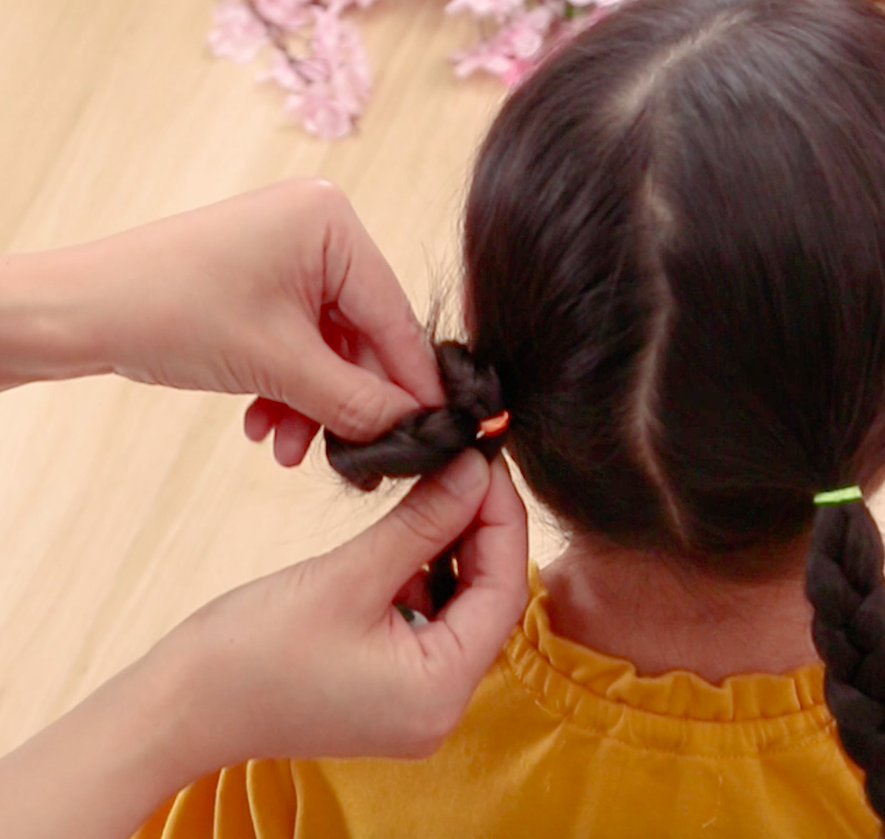 三つ編みでお団子アップ!子供におすすめのかんたんヘアアレンジを紹介。