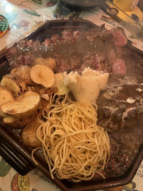 神奈川県横浜市 極厚肉塊4kg!肉汁の鉄板で作るガーリックライス!!〜ねこ娘とねずみ男さん〜デカ盛りんぐ。