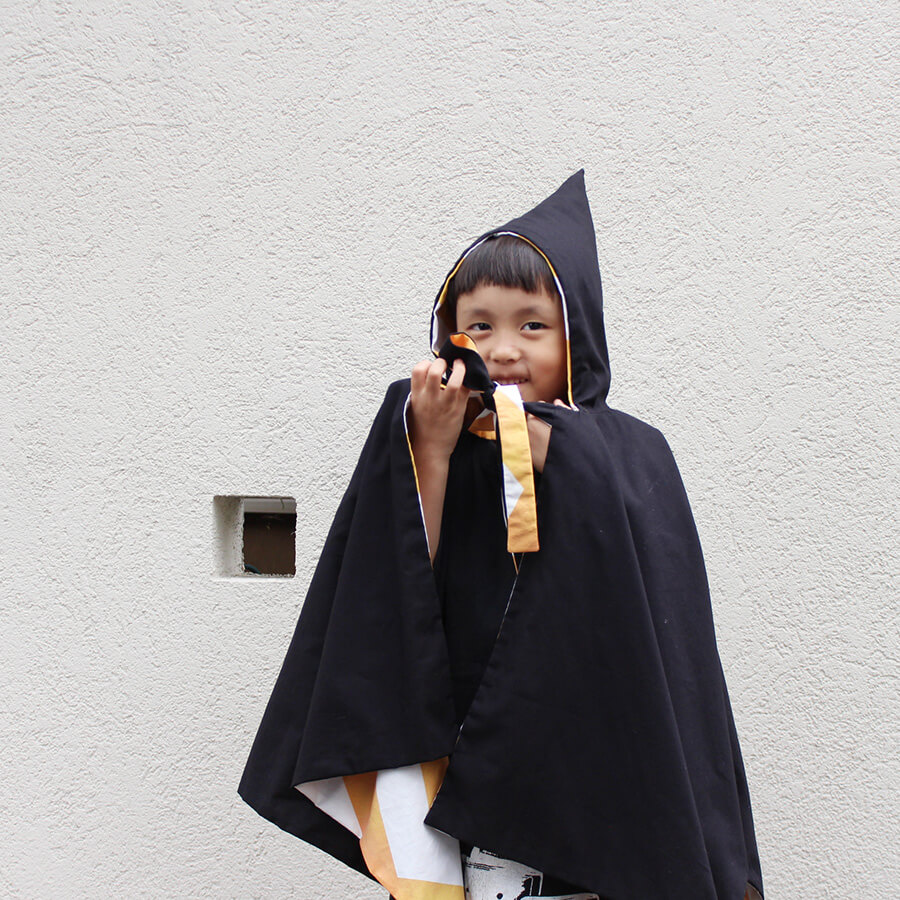 手作りハロウィングッズ 1枚着るだけで仮装が完成!とんがりフードの魔女マントの作り方nunocoto fabric。