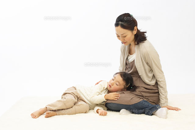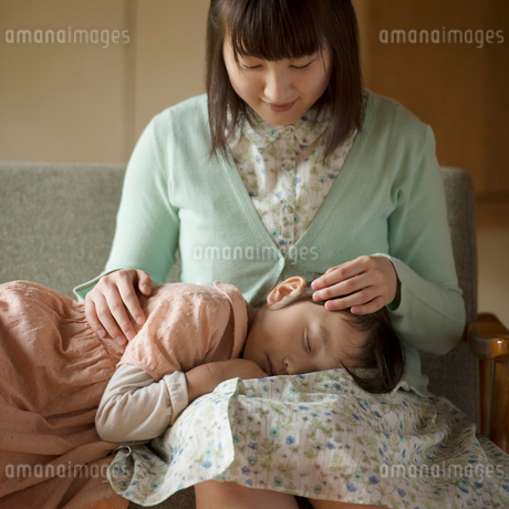母親の膝の上で眠る女の子の写真素材FYI02959339ストックフォトの Qlean Market キュリンマーケット。
