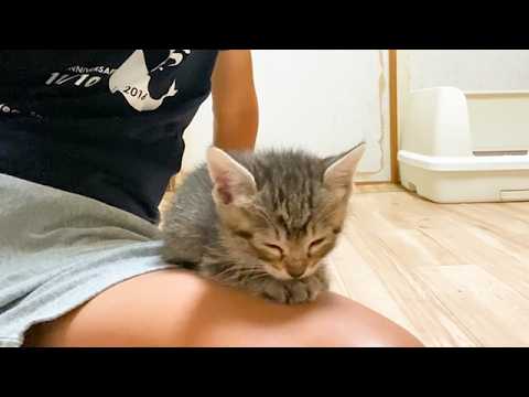 膝の上で寝る生後17日目の赤ちゃん子猫が可愛すぎた 保護猫。