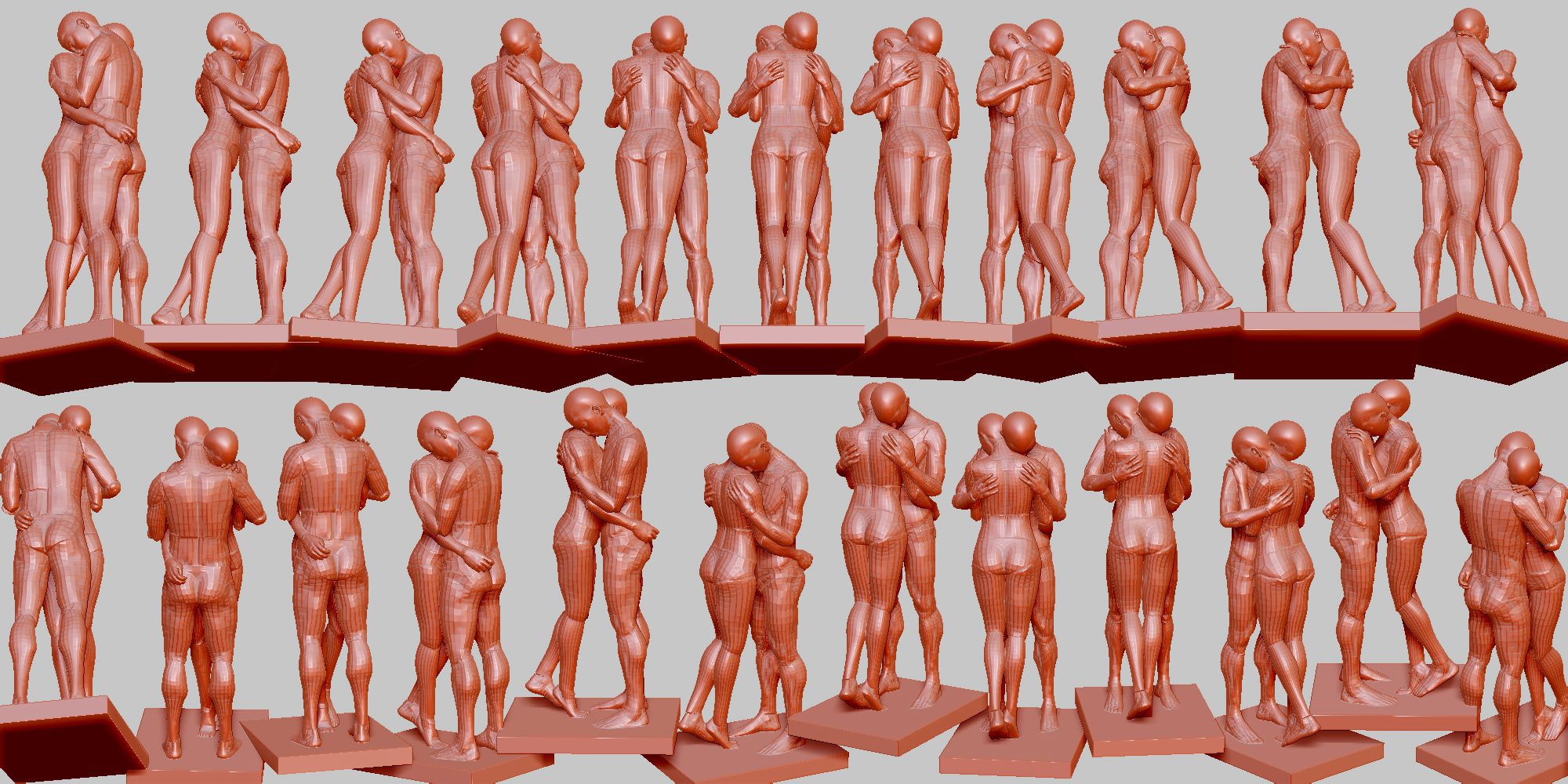 トレス素材 男女カップルポーズ 抱きしめられる7パターン - 絵師のためのネタ帳。